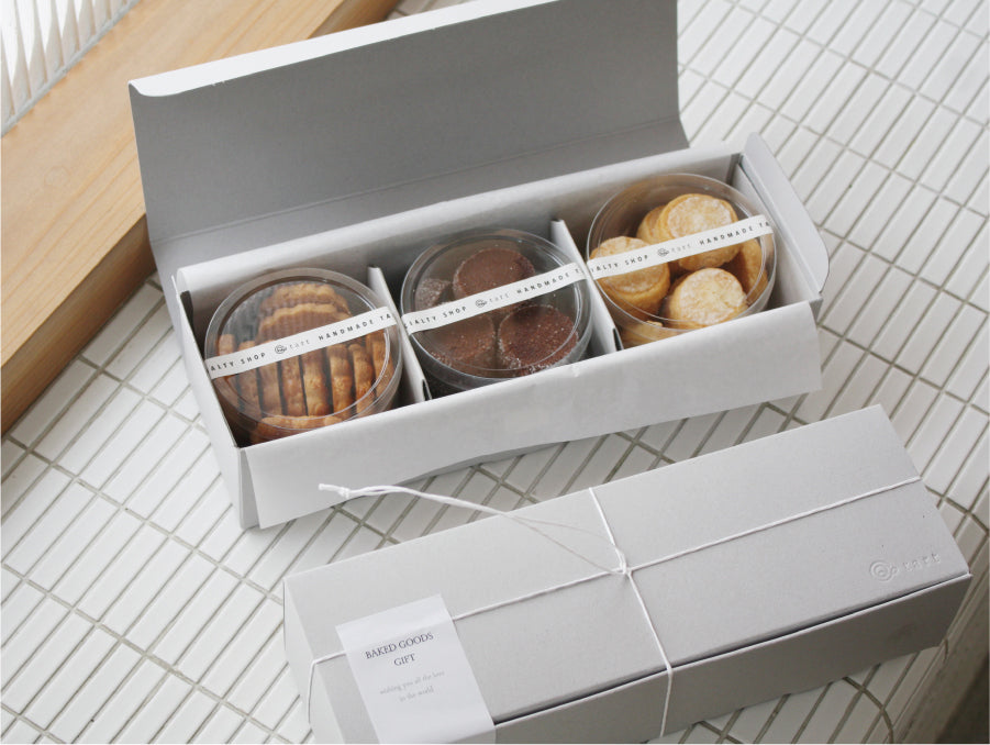 3種類のお菓子を詰め合わせたギフトボックス。