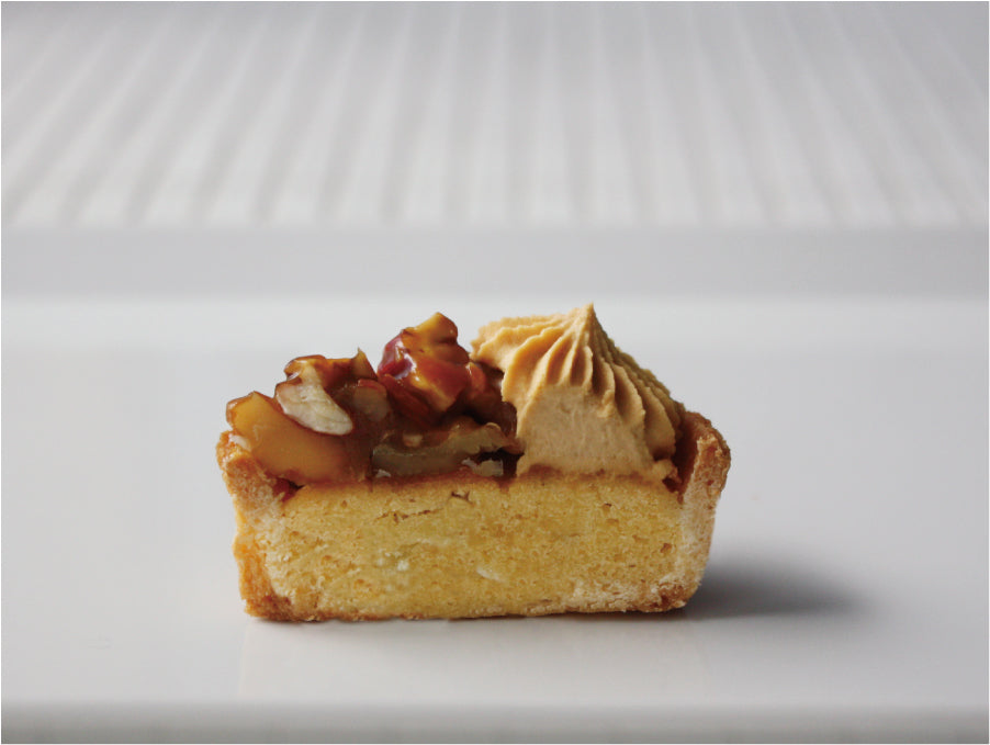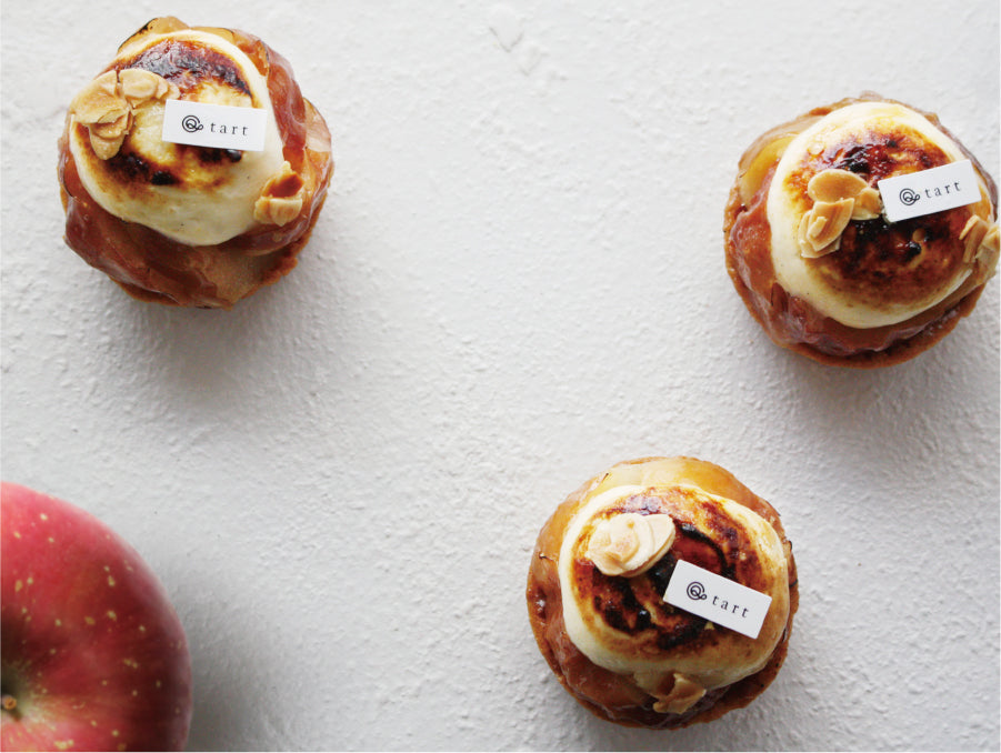 りんご(国産)、全卵、牛乳、バター、三温糖、薄力粉、小麦粉、グラニュー糖、コーティングゼリー、サワークリーム、アーモンド、レモン果汁、ブランデー、粉糖、ゼラチン、バニラビーンズ/ベーキングパウダー、ゲル化剤(増粘多糖類)、酸味料(クエン酸)、香料